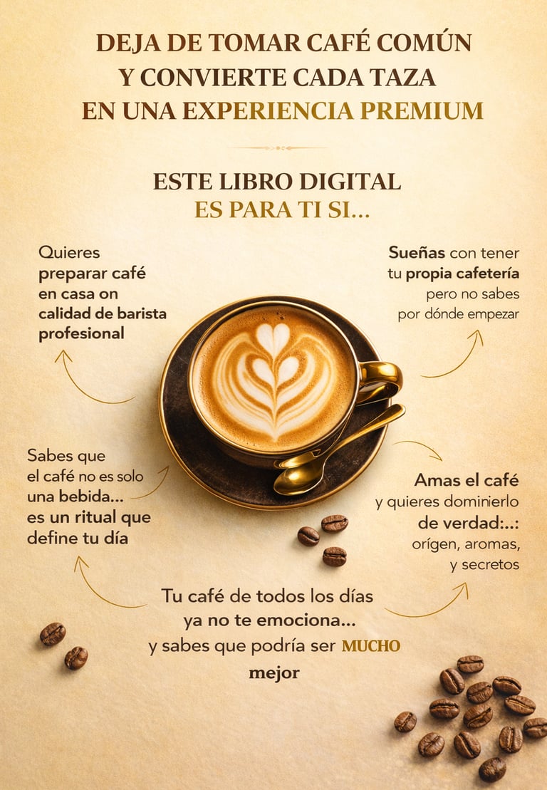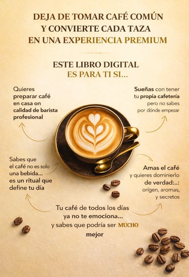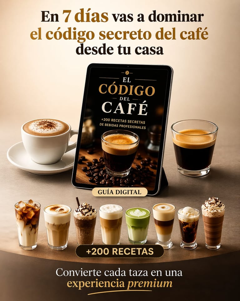 EL CÓDIGO DEL CAFÉ es una guía clara y visual que te lleva paso a paso, ayudándote a comprender, aplicar y dominar el café desde lo básico hasta un nivel más seguro y profesional.